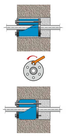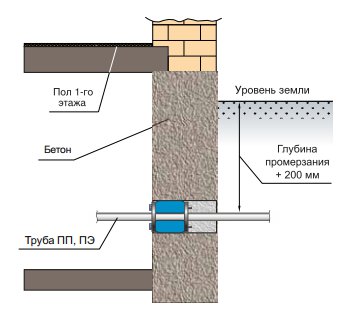 Узел стенового ввода из эластомерного полиуретана предназначен для надёжной герметизации прохода водопроводной трубы через фундамент сооружения.