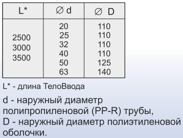Изделие представляет собой элемент полипропиленовой (РР-Р) трубы в ППУ-теплоизоляции и гидрозащитной полиэтиленовой оболочке со встроенным нагревательным саморегулируемым кабелем. Конструкция ТеплоВвода предусматривает возможность замены нагревательного саморегулируемого кабеля в случае выхода его из строя.