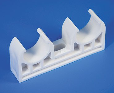Для того чтобы обеспечить не только надежную, но и аккуратную прокладку двух параллельных труб из PP-R применяют двойные опоры (двойные клипсы или крепления). Они обеспечивают оптимальное расстояние между трубами и надежно фиксируют трубы к стене.